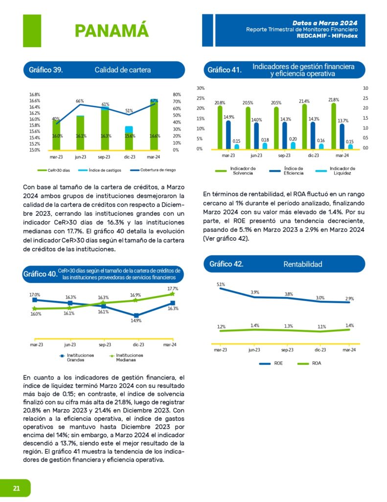 Se incluyen indicadores en las categorías tamaño de cartera de créditos y número de préstamos, calidad de la cartera de créditos, eficiencia operativa, gestión financiera y rentabilidad tanto para la región como para cada país.