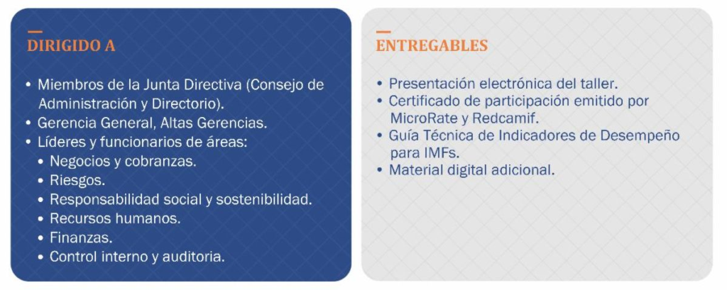 A la vez de desempeñarse como CEO, es directora del Subcomité Interno de Metodología de Evaluación y Calificación Social de MicroRate.